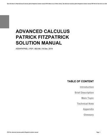 Read Online ADVANCED CALCULUS FITZPATRICK SOLUTIONS MANUAL FREE Doc BookBoon