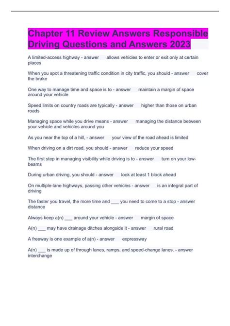 Reading Online RESPONSIBLE DRIVING ANSWERS KEY Doc
